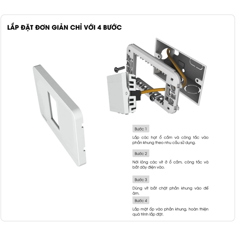 9. Lắp hạt vào đế: Đặt hạt công tắc vào đế và cố định bằng vít.